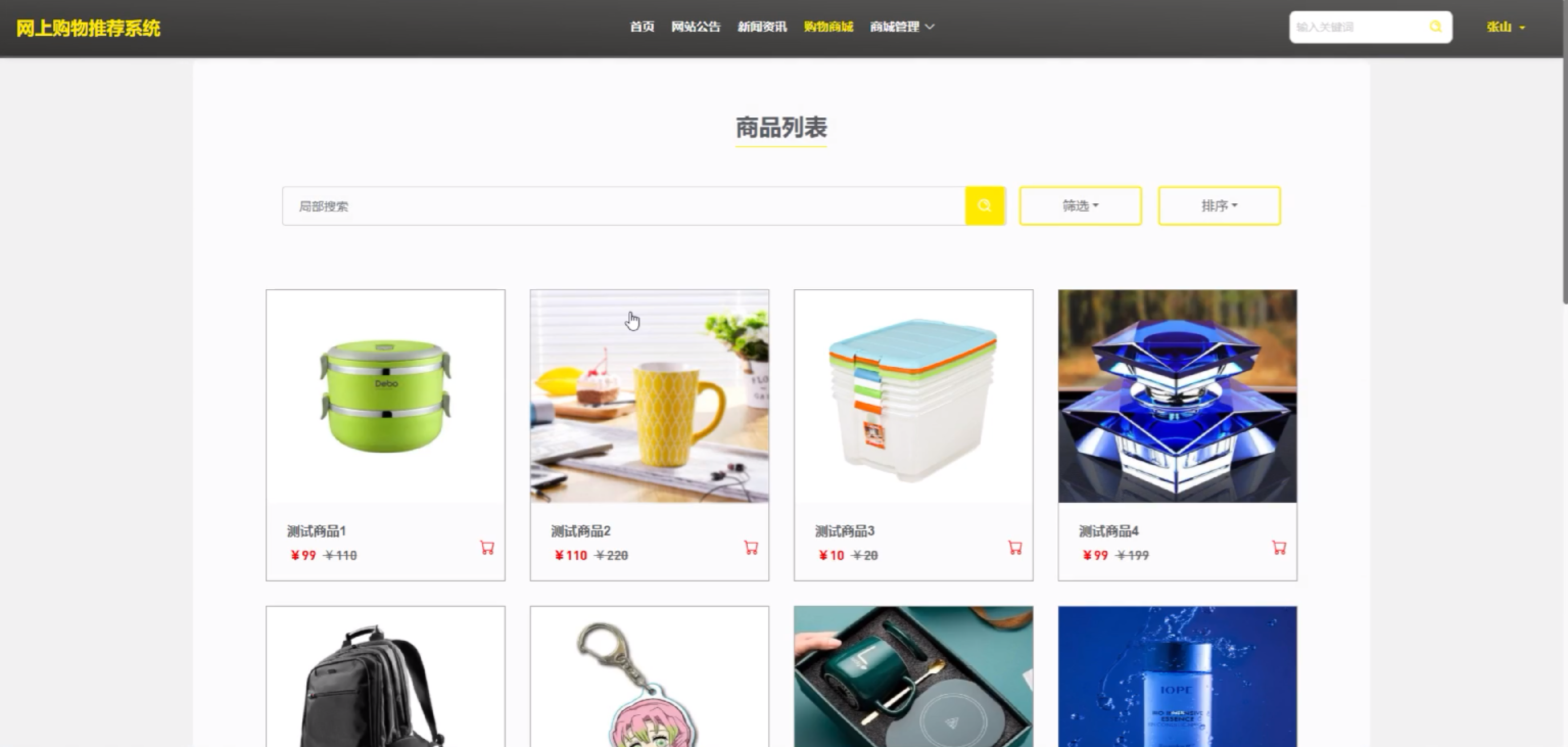 登录系统 进入购物商场页面 使用搜索栏输入关键词搜索商品信息 |