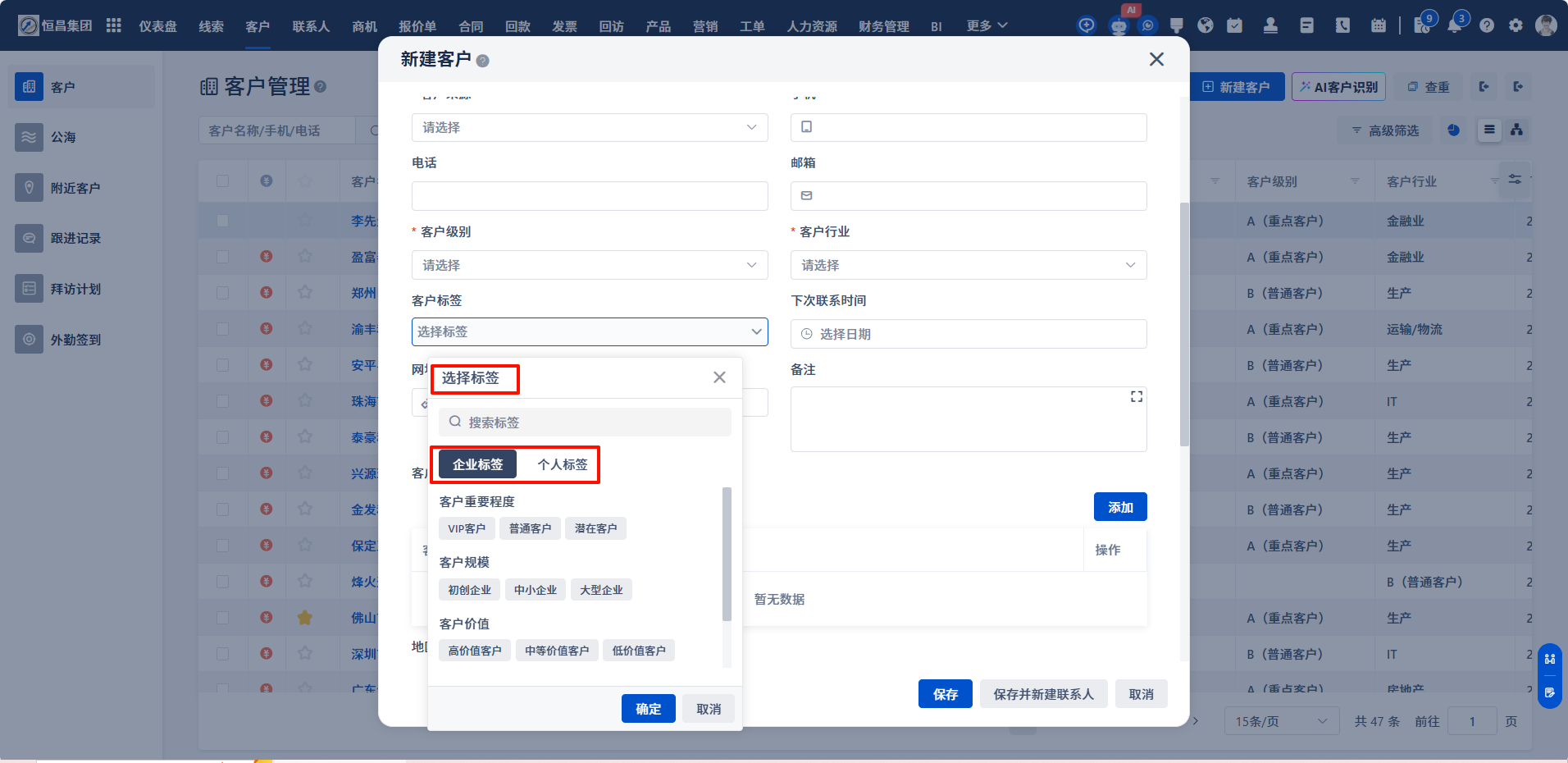 这种分类和标签管理方式不仅帮助企业更直观地了解客户群体的特征,还能为后续的营销策略制定提供精准的数据支持,实现精准营销,提高营销资源的利用效率。此外,通过标签管理,企业还能够快速筛选出特定类型的客户群体,进行针对性的营销活动或服务提升,进一步增强客户体验和满意度。