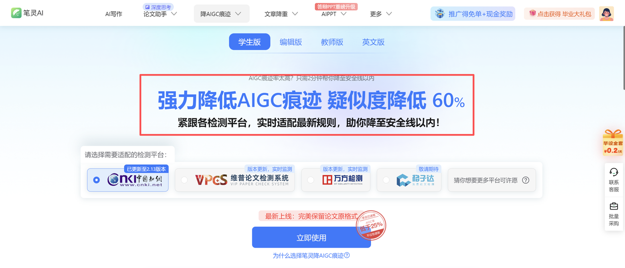 🥇1. 笔灵AI —— 降AI率最稳的一款,没有之一