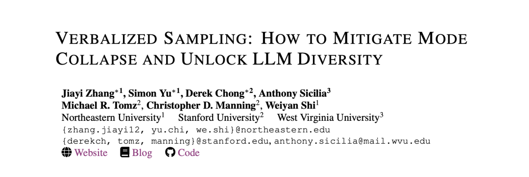 这篇论文提出一个几乎“零成本”的推理时策略 《Verbalized Sampling