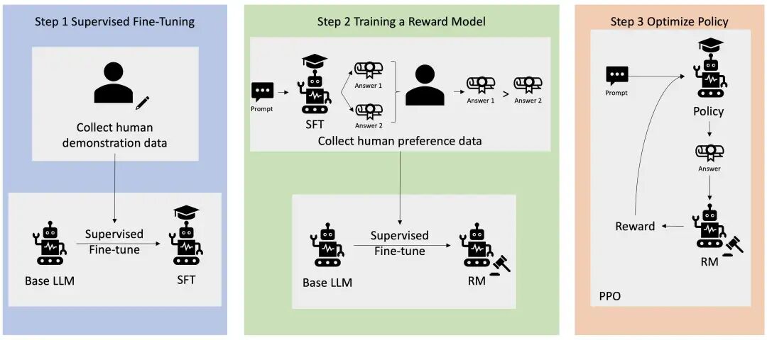 通过收集人类对智能体行为的评估数据,训练奖励模型来学习人类的偏好,然后利用该模型优化智能体的策略,使智能体能够生成更符合人类期望和价值观的行为