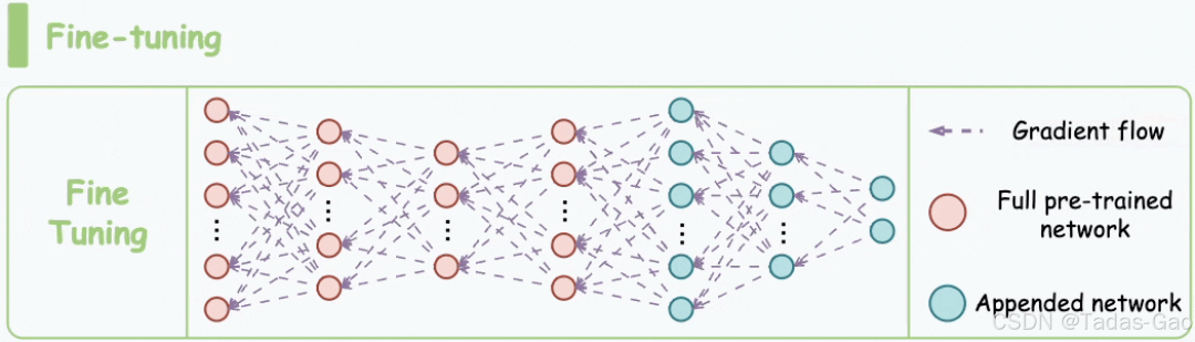 传统微调方法(如下图所示)对于大语言模型而言并不可行,因为这些模型具有数百亿甚至千亿的参数量,而且显存需求高达数百GB,并非所有人都能获得如此规模的计算资源。