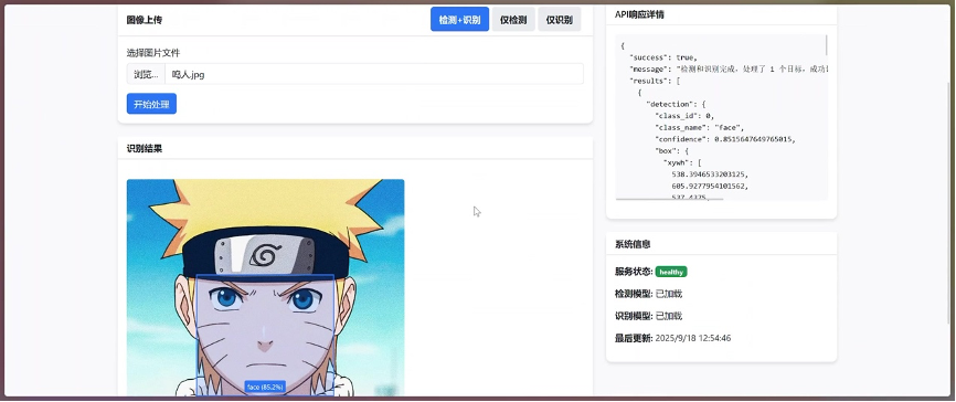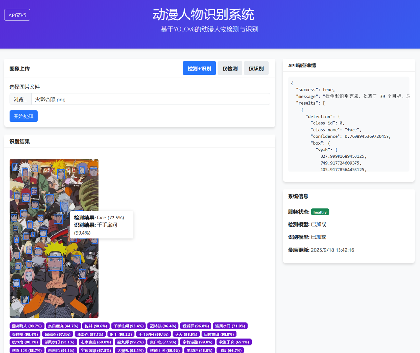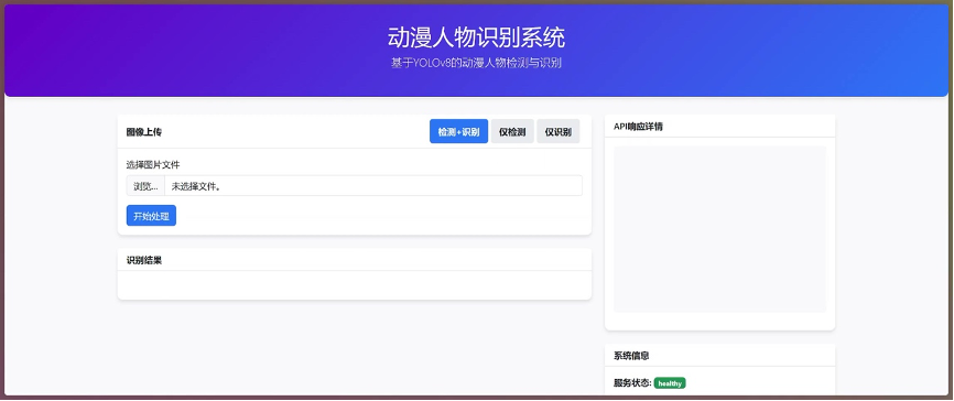 我写的网页太丑了,帮我设计一个规整好看的动漫人物识别网页,要求尽量体现api_server的所有功能。