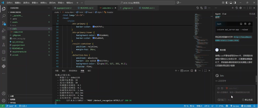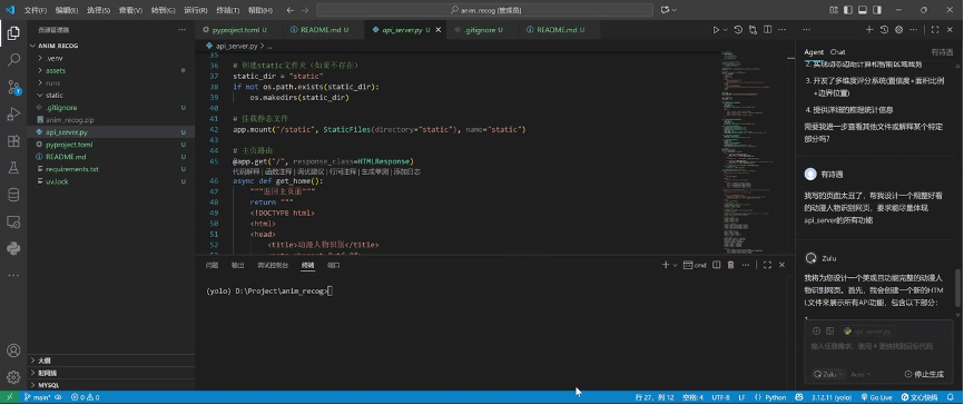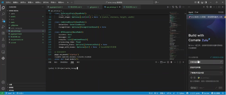 最终的项目地址可见:https://github.com/minghf85/yolov8_anim_recog/tree/comate