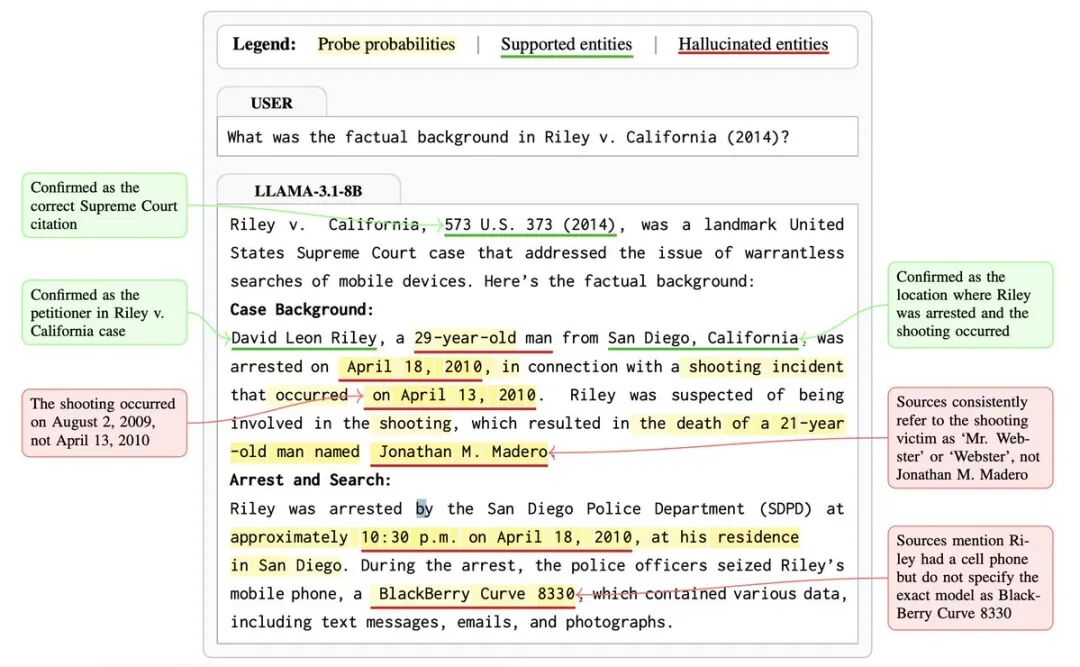 来自苏黎世联邦理工学院(ETH Zürich)等机构的研究团队的最新研究《Real-Time Detection of Hallucinated Entities in Long-Form Generation》就实现了这一点。他们开发了一个流式幻觉检测器,能在生成过程中即时标记幻觉实体。与以往主要针对短问答的检测方法不同,这项技术专门解决长文本生成中的幻觉问题。