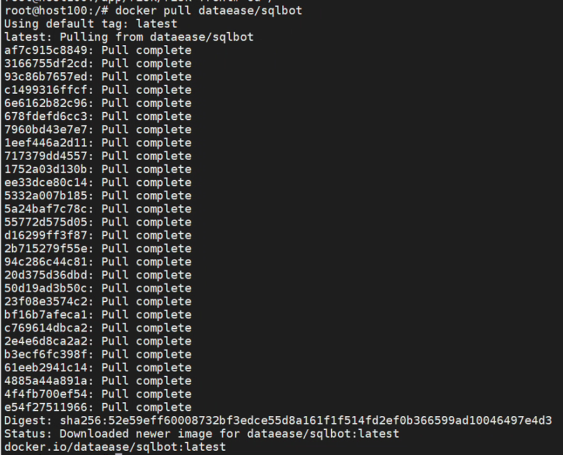 docker run -d \ --name sqlbot \ --restart unless-stopped \ -p 8000:8000 \ -p 8001:8001 \ -v ./data/sqlbot/excel:/opt/sqlbot/data/excel \ -v ./data/sqlbot/images:/opt/sqlbot/images \ -v ./data/sqlbot/logs:/opt/sqlbot/app/logs \ -v ./data/postgresql:/var/lib/postgresql/data \ --privileged=true \ dataease/sqlbot