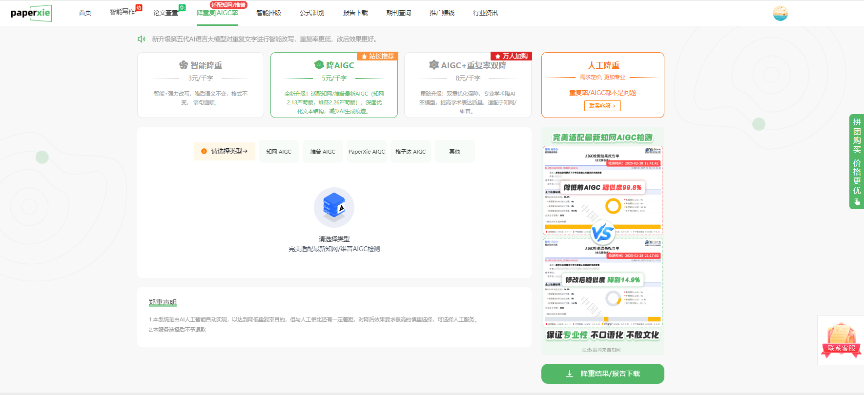 从名称就能看出其聚焦于去除 AIGC 痕迹,尤其擅长处理论文的学术内容。官方表示,对知网、维普、朱雀等平台,能将 AIGC 率控制在一定范围内,若未达到预期效果可进行相关反馈。