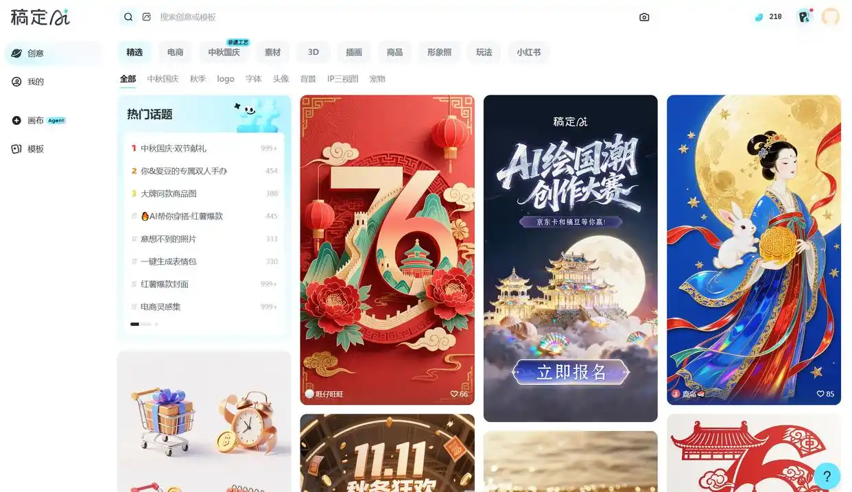 作为我们首推的工具,稿定AI(GaoDing AI)绝对是国内AI设计领域的佼佼者。它并非一个单一功能的工具,而是一个集成了AI绘图、AI海报、AI商品图、AI文案乃至AI视频等多种功能的综合性创作平台。这种“一站式”的特性,使其成为运营、市场、电商从业者的得力助手。