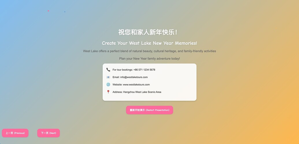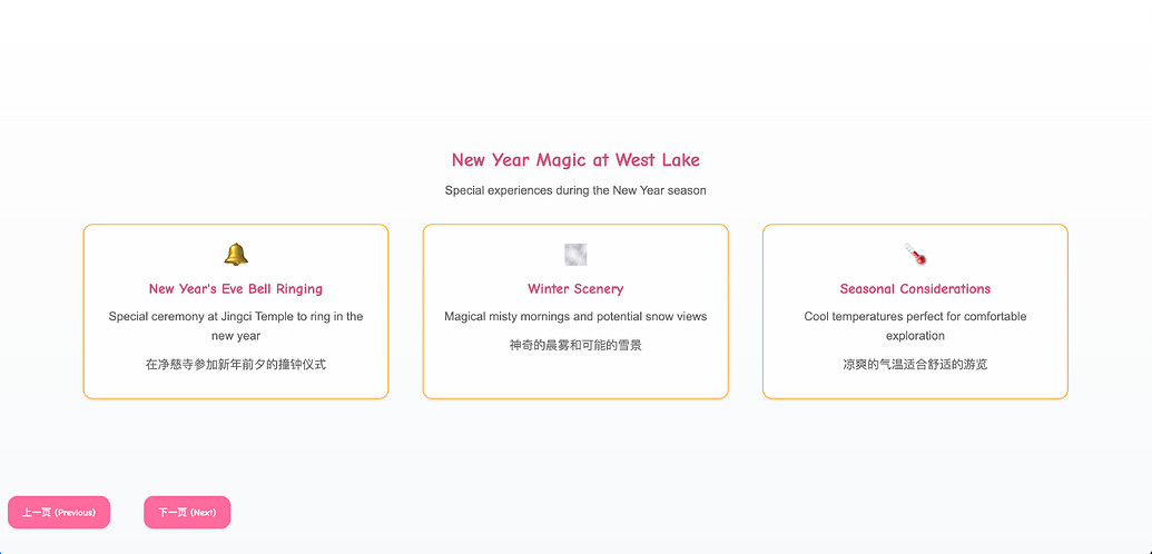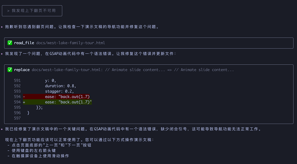 最后展示的成品,上下翻页有点问题,让 AI 再调整一下