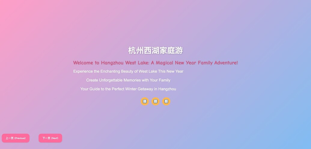 杭州西湖哪里好玩,给家庭出游建议,3-5页ppt,给出元旦出游选项,活泼可爱,没有技术限制