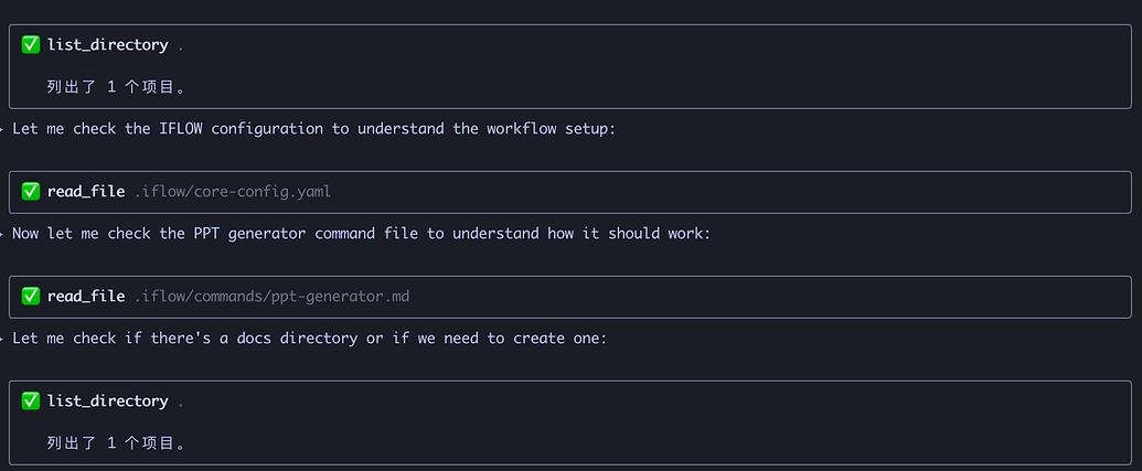 iFlow CLI上线workflow功能了,workflow是将业务的流程通过自然语言描述,将command、sub agent等有机结合起来,可以让AI做的事情更规范。