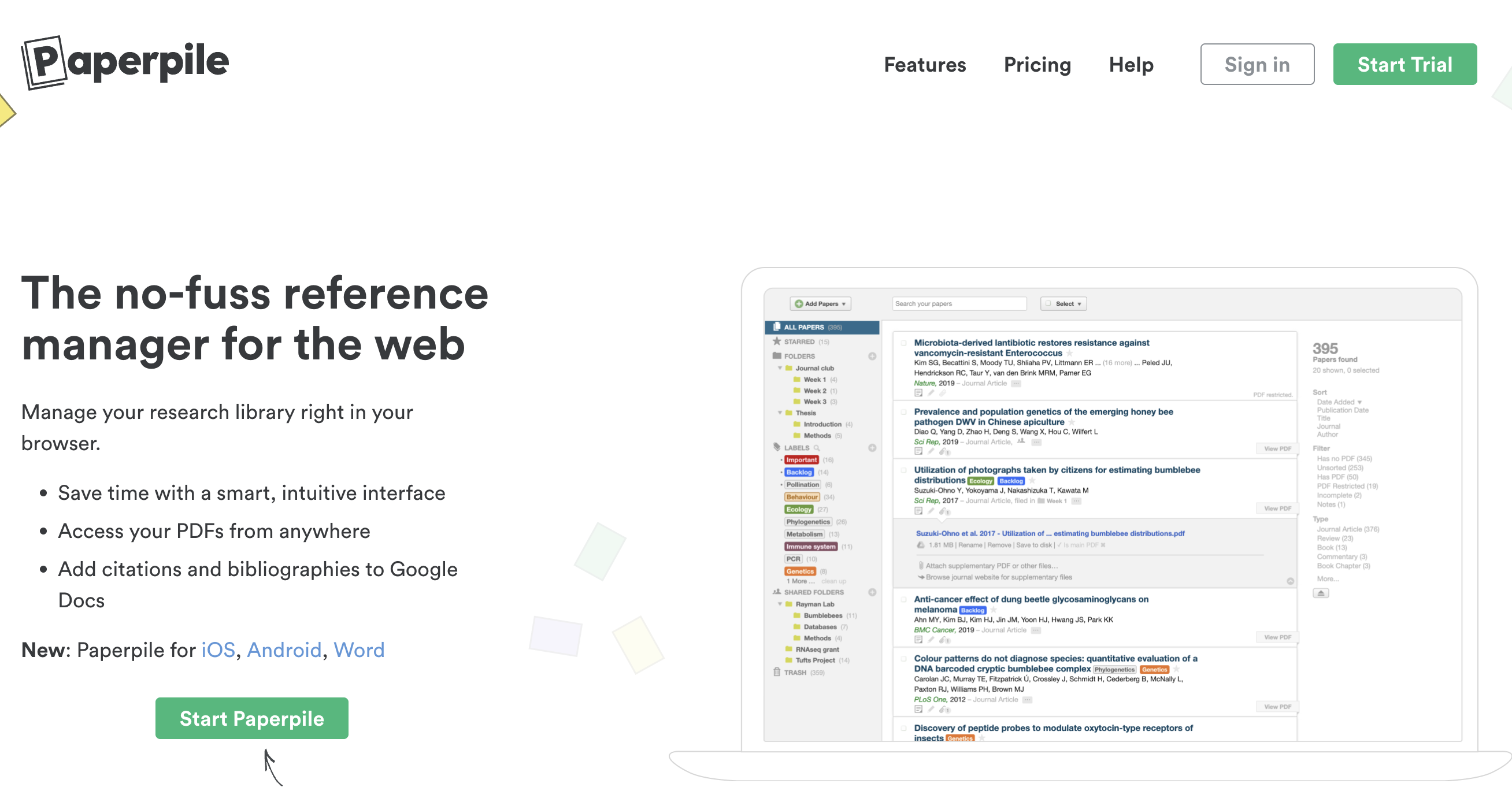 面向Google生态的文献管理工具。与Google Docs无缝集成,用户在写作过程中即可插入引用并生成参考文献。Paperpile基于云端,支持跨设备使用,特别适合习惯云办公的科研人员。操作简洁、界面清爽,是一款轻量化文献管理器。