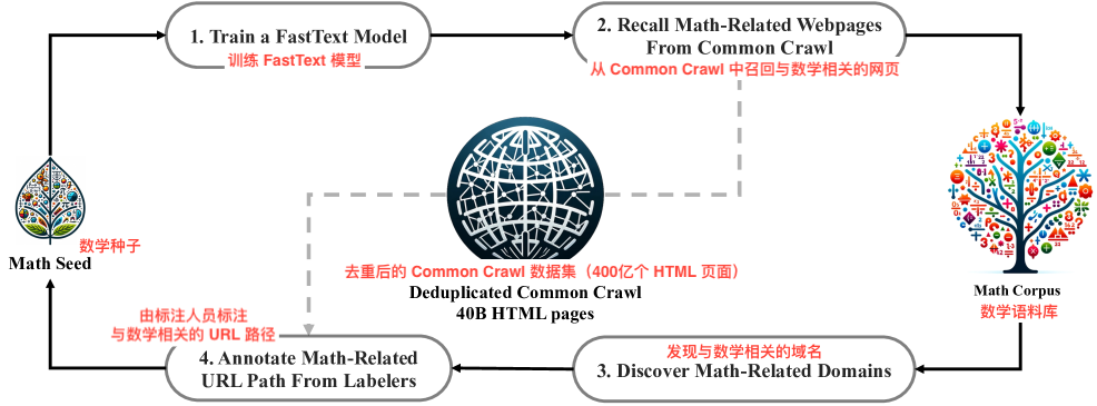 - 在 OpenWebMath 上选一小批高质量数学网页当“种子样本”;