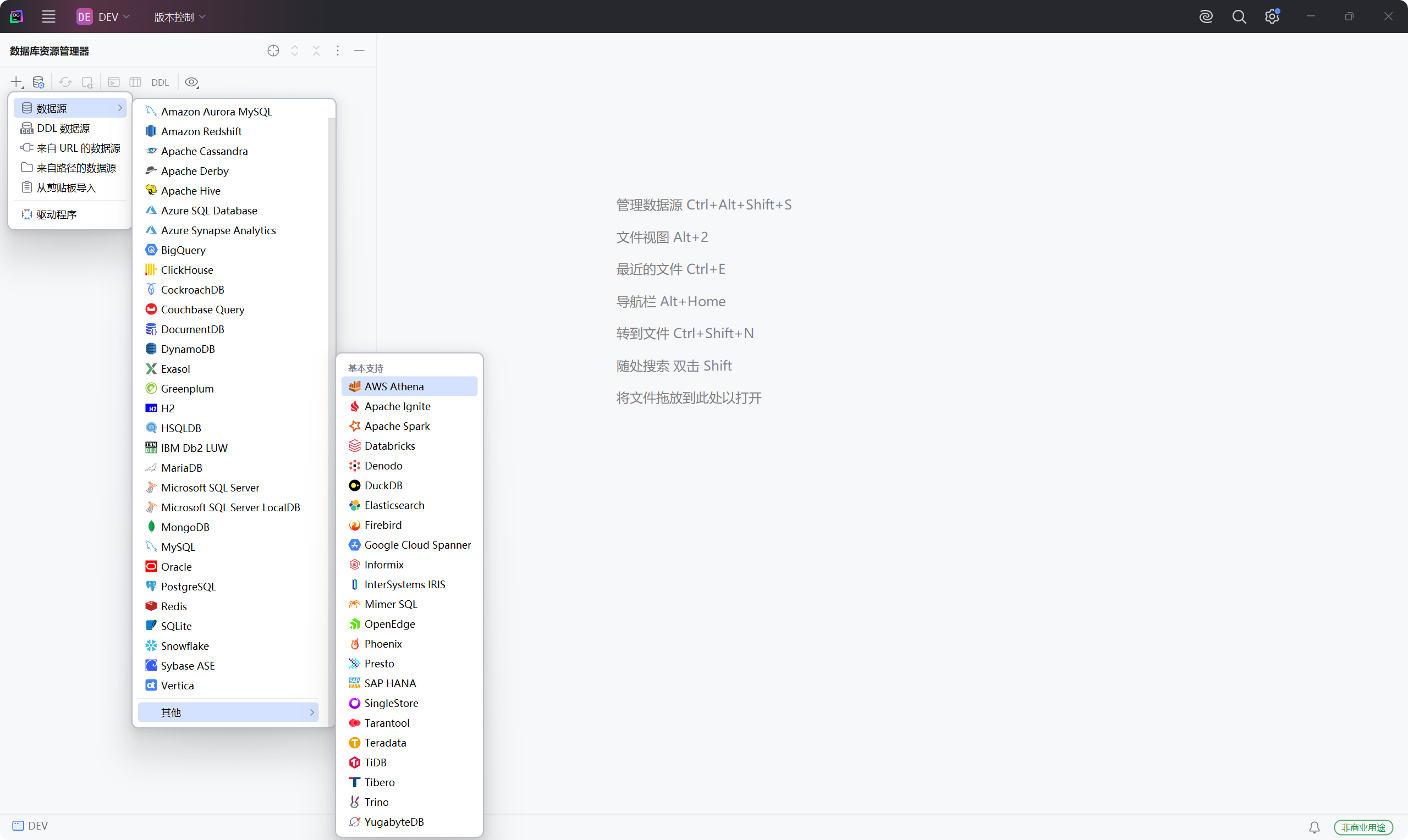 - 多种数据库:基于 JDBC 驱动连接,支持各种常见的关系型数据库和 NoSQL 数据库,例如 PostgreSQL、MySQL、Oracle、Microsoft SQL、MongoDB、Redis、Azure SQL、Amazon Redshift、Amazon DynamoDB、SQLite、IBM Db2、H2、Sybase ASE、Exasol、Apache Derby、MariaDB、HyperSQL、Snowflake、Apache Cassandra、ClickHouse、Greenplum、Apache Hive、OpenText、CockroachDB、Couchbase、Google BigQuery 等。