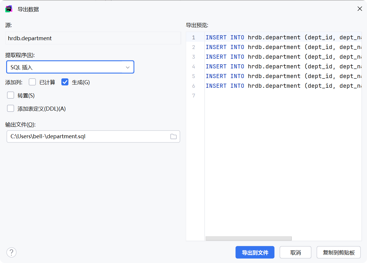 - 导入导出:DataGrip 支持 CSV/TSV 等文件导入数据,以及多种格式的导出,例如 SQL、CSV、JSON、XML、HTML、Markdown、Excel、自定义脚本等。同时它还集成了 mysqldump/pg_dump 等导出工具。