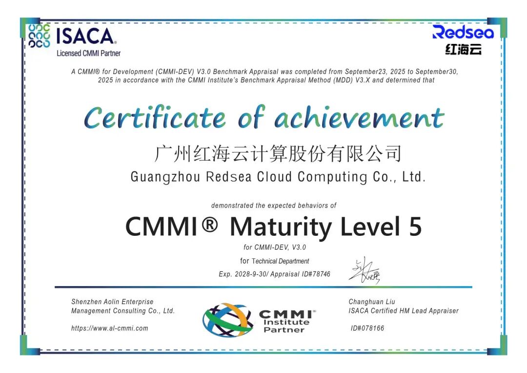 近日,红海云连续三次成功通过CMMI 5级认证,且最新认证基于难度全面升级的V3.0评估标准。标志着红海云在软件开发成熟度、管理能力及技术创新方面持续保持全球顶尖水平。