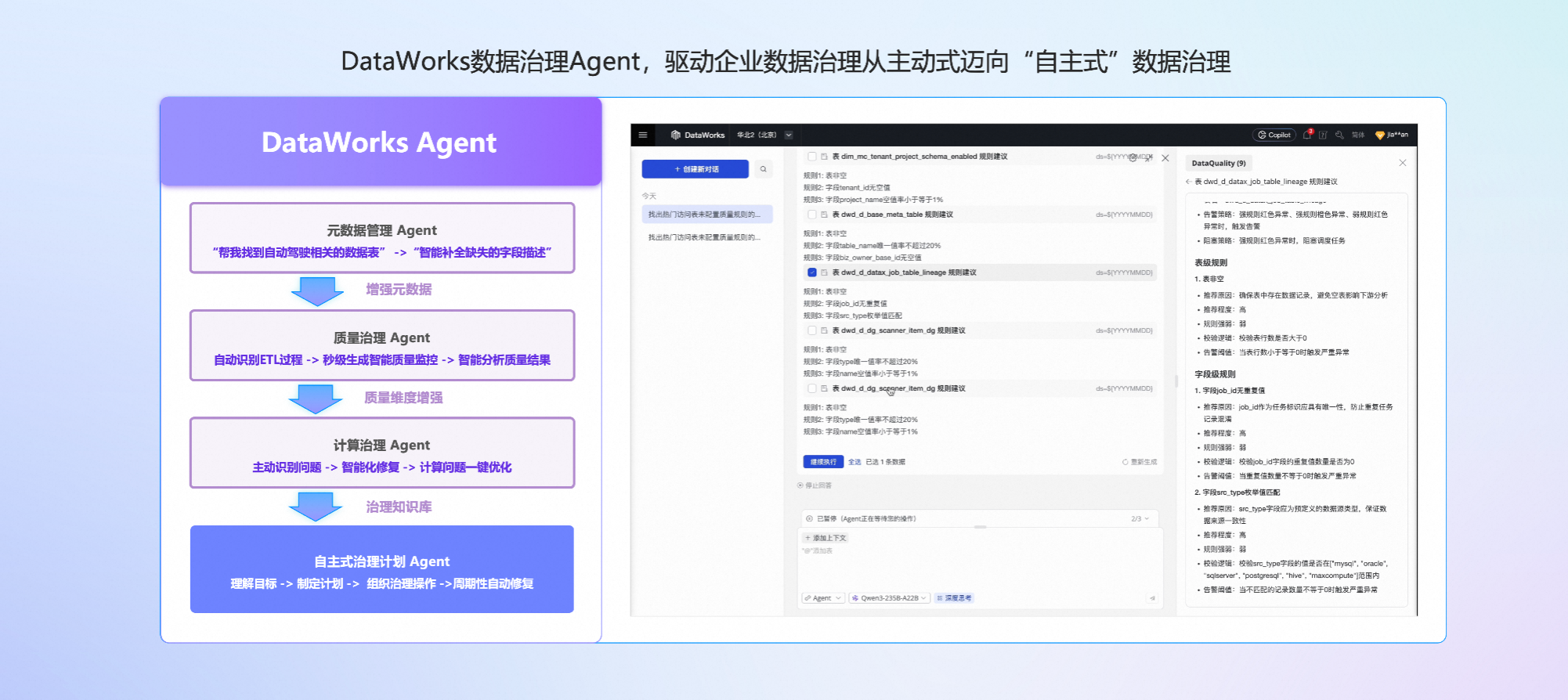 DataWorks 数据治理Agent将 AI 深度融入数据治理全流程: