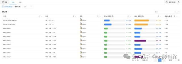 进入 DeepFlow 中的指标-主机功能入口,可以快速调阅所有主机的 CPU 使用率、MEM 使用率、系统负载,用于对 IT 系统全部主机状态的快速浏览。