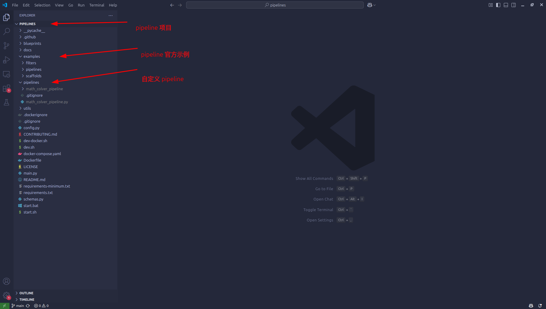 - 项目中 example 文件夹包含了官方实现的一些 pipeline ,可以参考。