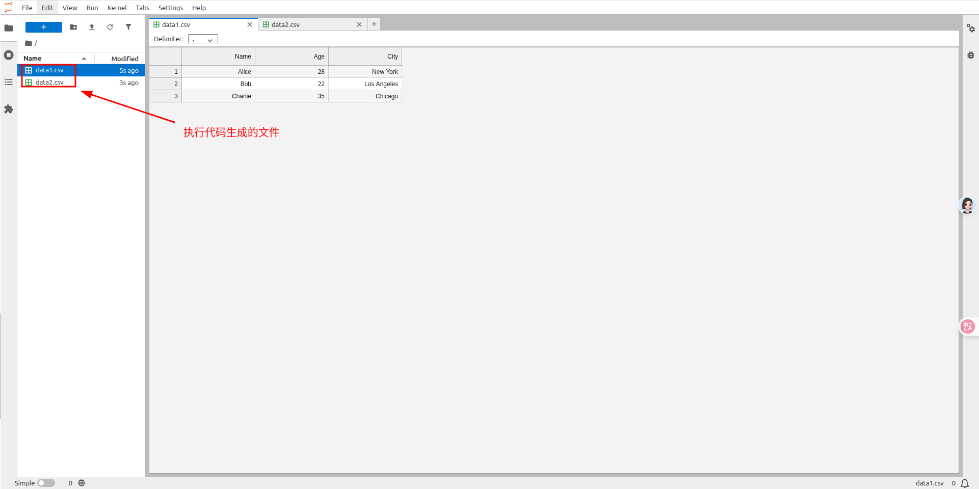 此时,可以在 jupyter 里面看到生成的两个 csv 文件。