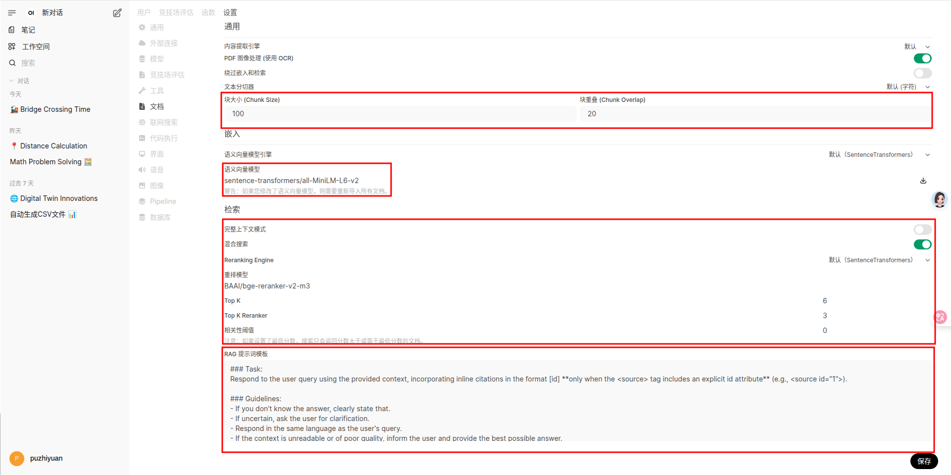- 文档切块大小和块重叠,根据上传的数据特点适当调整