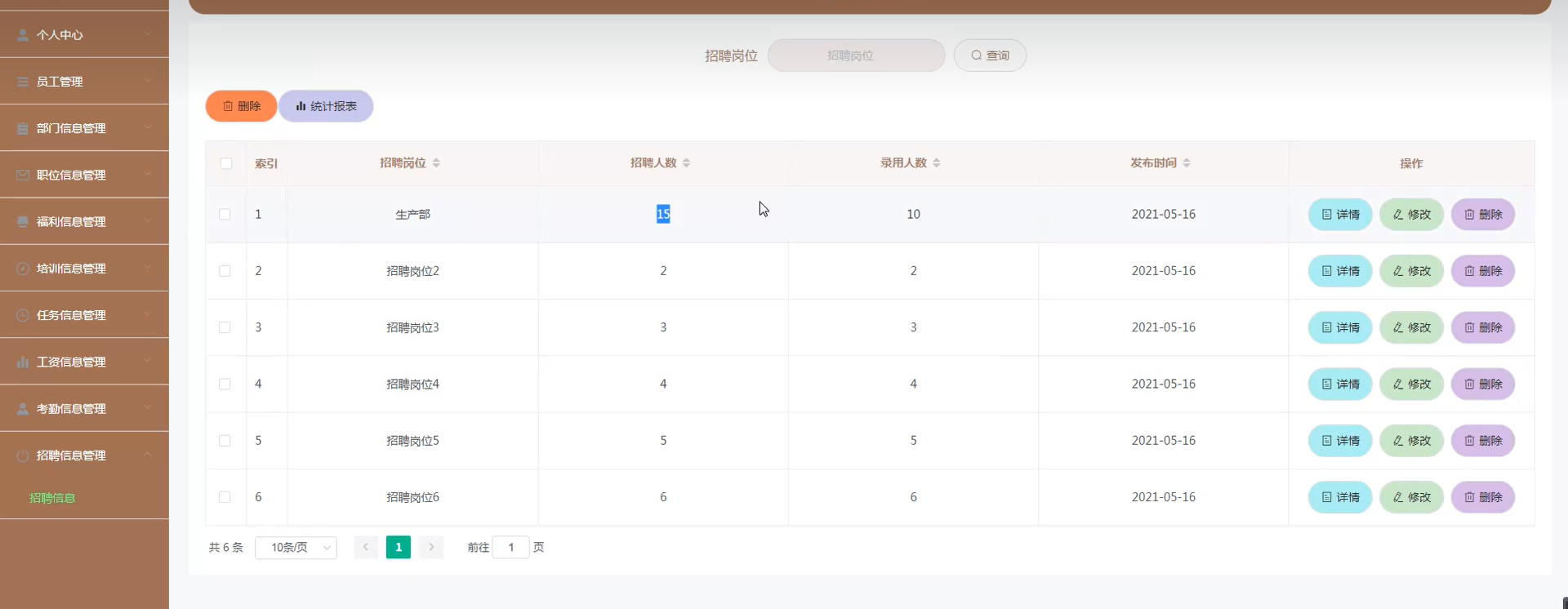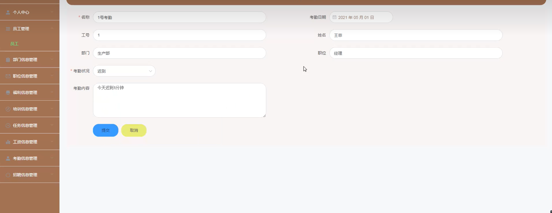 Java项目:中小企业人事管理系统(java+SpringBoot+Mybaits+Vue+elementui+mysql)