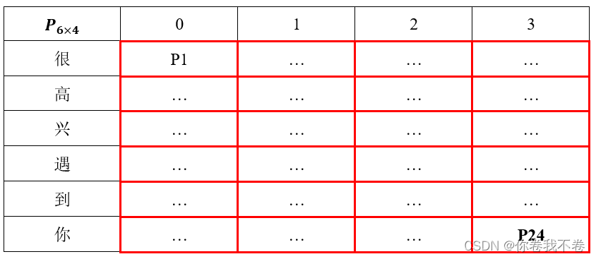 # 若 P[1,0]=3 ,代表 句子中第1个字符 的状态“0”最有可能是 句子中第0个字符 的状态“3”转移来的,对应着 句子中第0个字符 的状态“3”连接 句子中第1个字符 的状态“0”