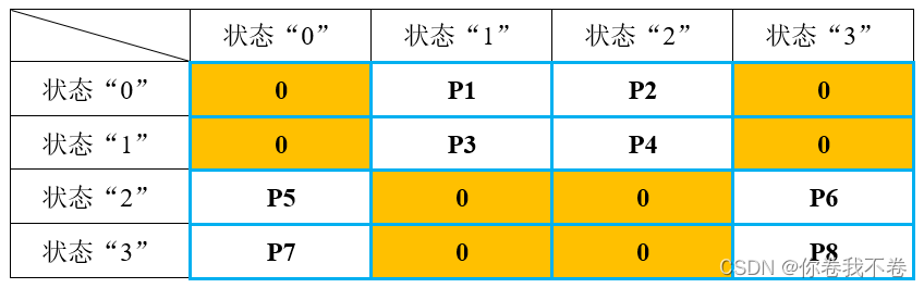 存储候选路径的连接方向。状态转移图 的示例线路的存储方式见下表,如何理解这个矩阵呢?把上述 状态转移图 顺时针旋转90度就是了。