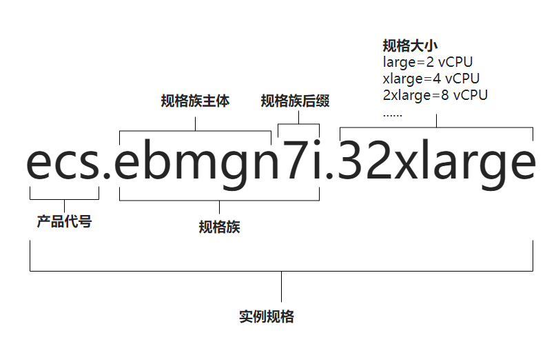 阿里云云服务器ECS提供了多种实例规格族,一种实例规格族又包括多个实例规格。其中,实例规格族名称格式为ecs.<规格族>,实例规格名称为ecs.<规格族>.<规格大小>。