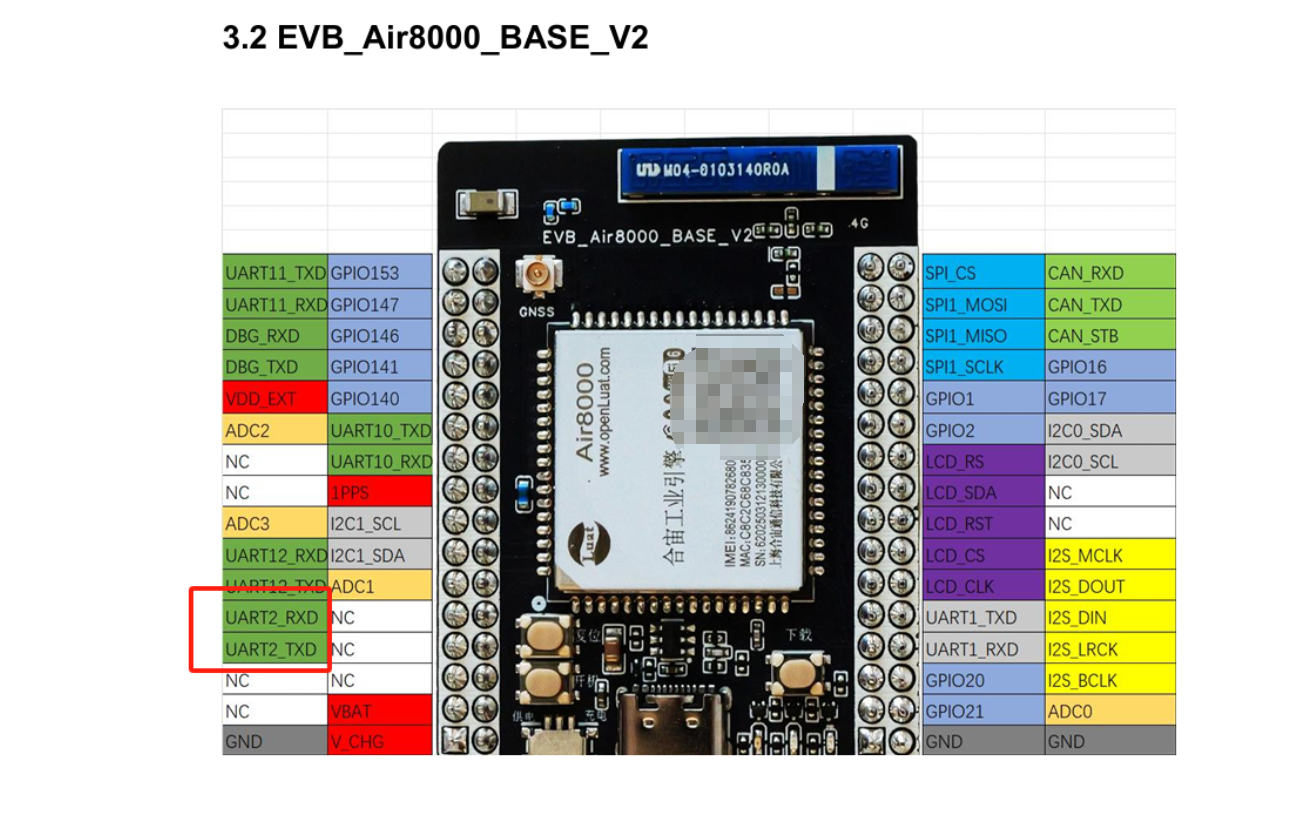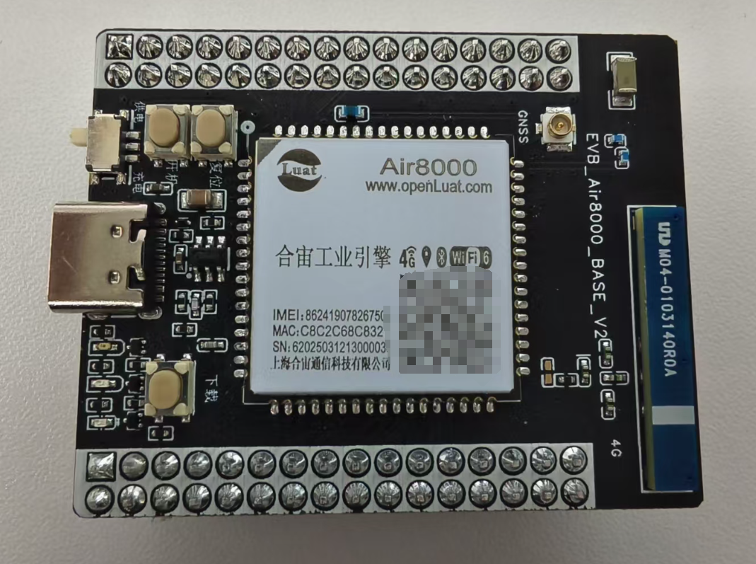将设备组装好并连接 USB 数据线,将 TTL 转 USB 连接到 Air8000 的核心板的 uart2 上面。