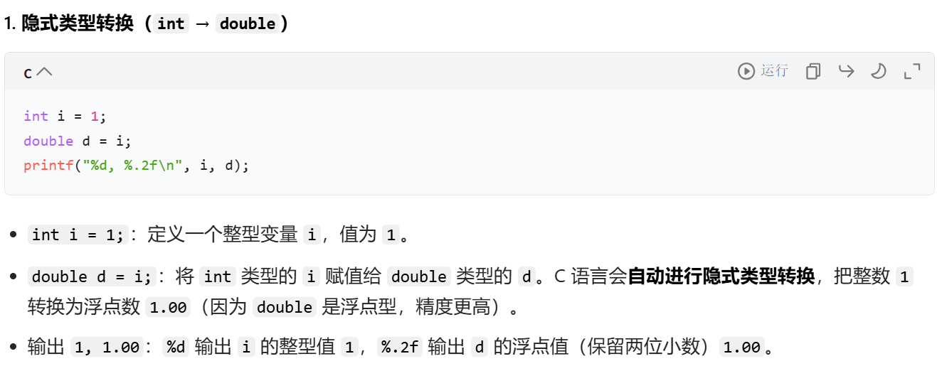 // 1、隐式类型转换 整形之间/整形和浮点数之间