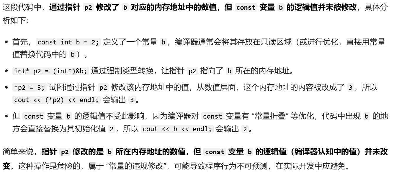 编译器会将const值直接替换成常量,或者是放入寄存器中,改了我们也读不到(监视窗口看都是3)