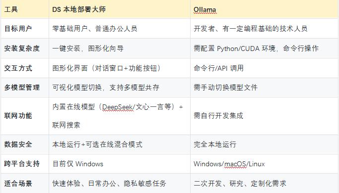 下面,给大家看一下DS 本地部署大师与Ollama命令行工具的对比: