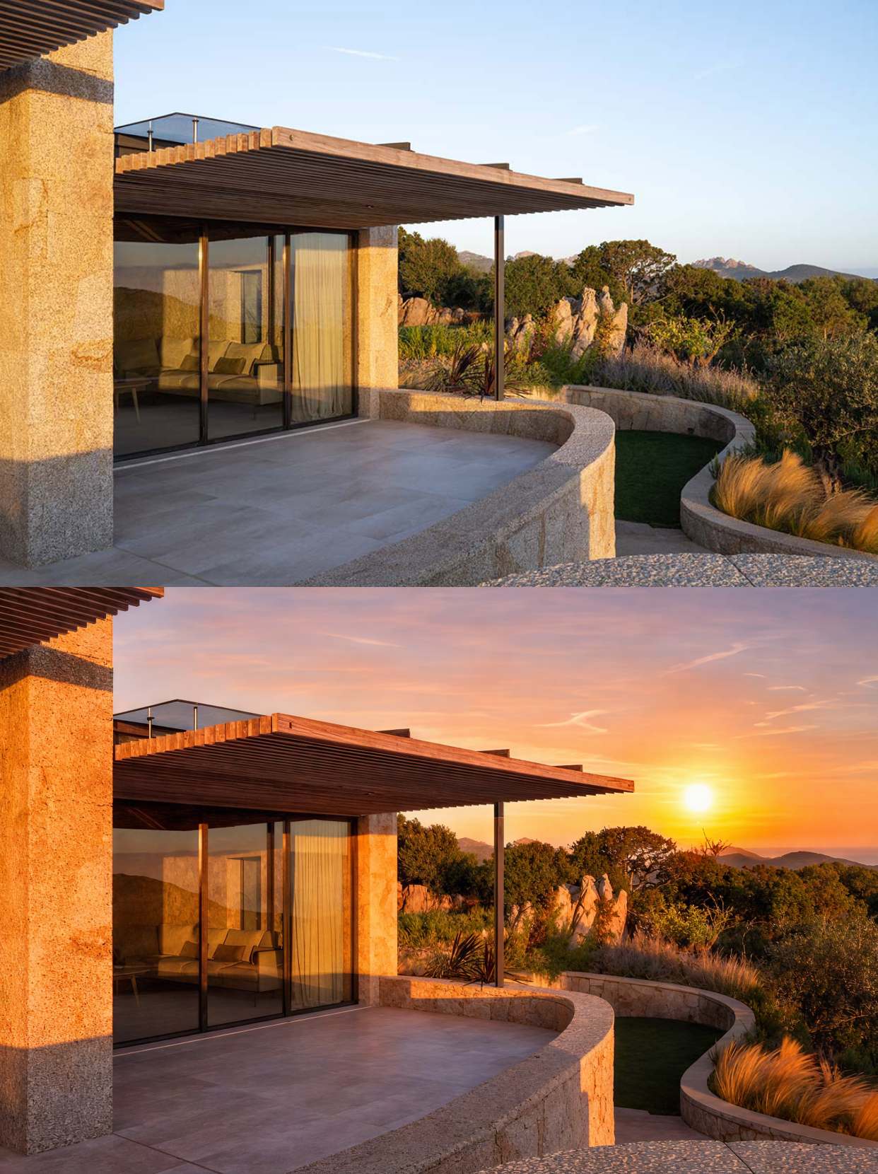 可保持场景不变,增加四季、天气、时间的变化,尽量展现出不同时间的建筑氛围。