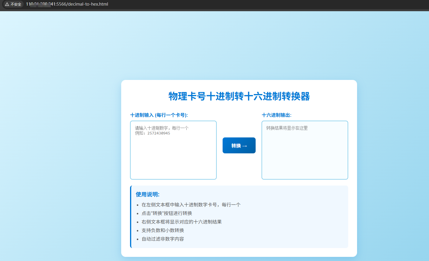 CodeBuddy IDE是非常不错的AI开发工具,具备全场景开发,并且由于是腾讯自家工具,还能快速部署到EdgeOne Page和轻量Lighthouse服务器。话说有一天,有一批卡片,需要获取卡片的物理卡号,而客户那边有读卡器,可以读取,但是,读卡器读取出来的是10进制的。但是对于系统来说,又需要16进制。那么为了最简单的办法,就需要写一个转换器。既然这么简单的需求,用网页实现最简单了。