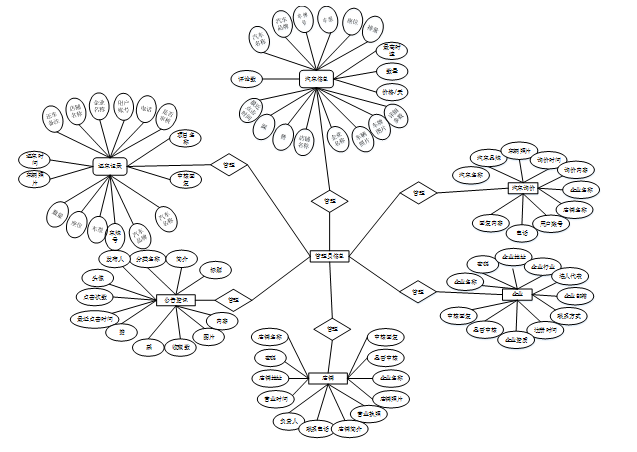 概念设计是将整体分为在地面上表达出来的单个个体。E-R图形象的连接了实体模型和概念模型。因此,E-R图需要根据数据库表和表字段进行合理设计,表达的概念知识点用图形描述,可以直观地让相应人员清楚,并分解整个E-R图。我们通常表达不清晰没有概念的东西。但是通过E-R之间的联系,E-R模型法是对这种模糊概念的事务最简单、最常用的设计方法。 在系统中将对 “汽车信息、还车记录、公告资讯、店铺、企业、汽车询价”等几个主要的实体属性进行布局,如图4-2所示: