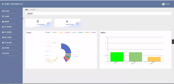 管理员进入主页面,主要功能包括对系统首页、用户管理、企业管理、店铺管理、汽车信息管理、汽车品牌管理、租赁订单管理、汽车询价管理、系统管理、我的信息等进行操作。管理员主页面如图5-6所示: