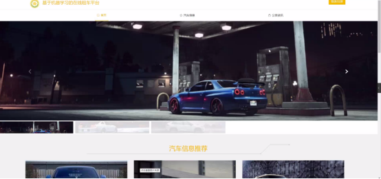 前台页面:若进入本网站,需要注册自己的账号和密码,输入正确的账号和密码,用户才可以进入在线租车平台主页面,进入在线租车管理页面后,用户可以在搜索栏中对自己想要的在线租车信息进行查看或收藏,在个人中心用户可以修改自己的个人详细信息。