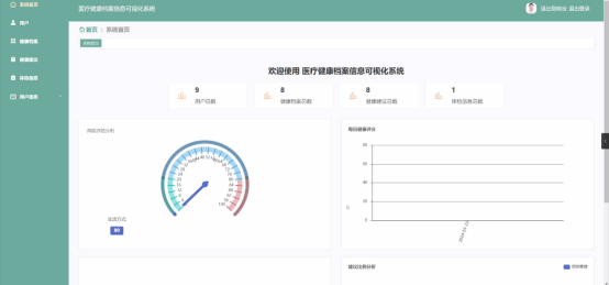 java-springboot医疗健康档案信息可视化系统0tz3n013计算机毕业设计(配套有源码 程序 mysql数据库 论文)本套源码可以在文本联xi,先看具体系统功能演示视频领取,可分享源码参考。体检单、化验结果、就诊记录散落在不同医院,纸质病历难保存、难检索,医患双方都头疼。把数据汇聚到云端,用图表、曲线、雷达图让血压、血糖、BMI一目了然,再给出AI健康建议,才能真正做到“让数据为患者服