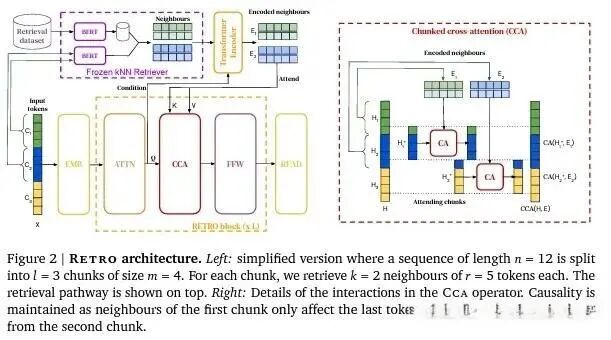 RETRO 是一种检索增强型Transformer,它将输入文本分割为较小的片段,并从大型数据库中检索相关信息。通过预训练的BERT嵌入,它从外部数据中提取相似片段来丰富上下文,并通过分块交叉注意力机制整合这些片段,从而提升预测精度而不显著增加模型规模。此方法更高效地利用外部知识,特别适用于问答和文本生成任务,同时避免了大模型的高计算成本,能更好地处理海量信息。