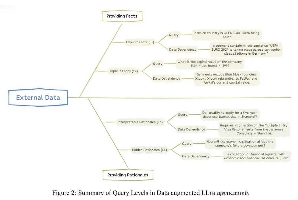 根据与外部数据D的交互程度和所需的认知处理水平,可以将查询分为不同层次。