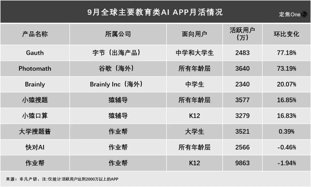 各大应用榜单刚刚公布的9月数据,揭示出一个AI应用新风向——教育类AI应用正加速崛起。