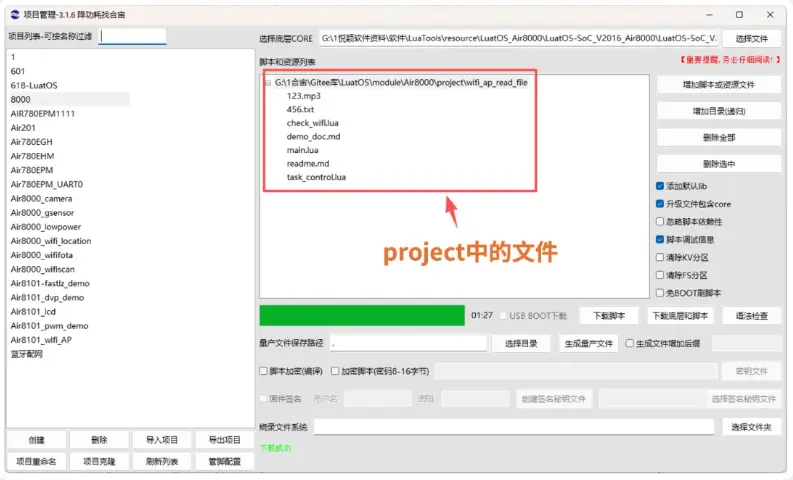 Air8000支持LuatOS开发,应用示例持续更新中。文件管理系统demo示例相关资料,可通过下方链接获取。