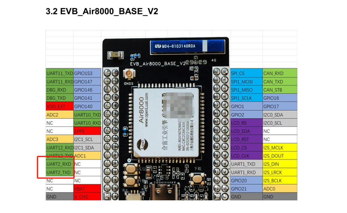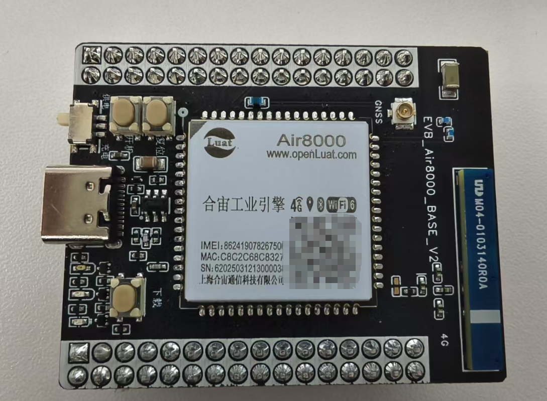 将设备组装好并连接 USB 数据线,将 TTL 转 USB 连接到 Air8000 的核心板的 uart2 上面。
