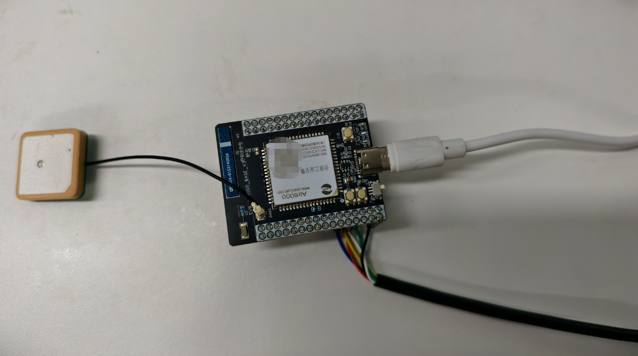 需要注意的是需要将 TTL 转 USB 的 RX 与核心板的 UART2 RX 连接,TX 与和核心板的 UART2 TX 相连接(这是因为 gps 芯片串口与 cat 1 芯片的串口是交叉相连的,所以 TTL 转 USB 的串口只需和 cat 1 的串口 RX 接 RX,TX 接 TX),连接好后如下图所示: