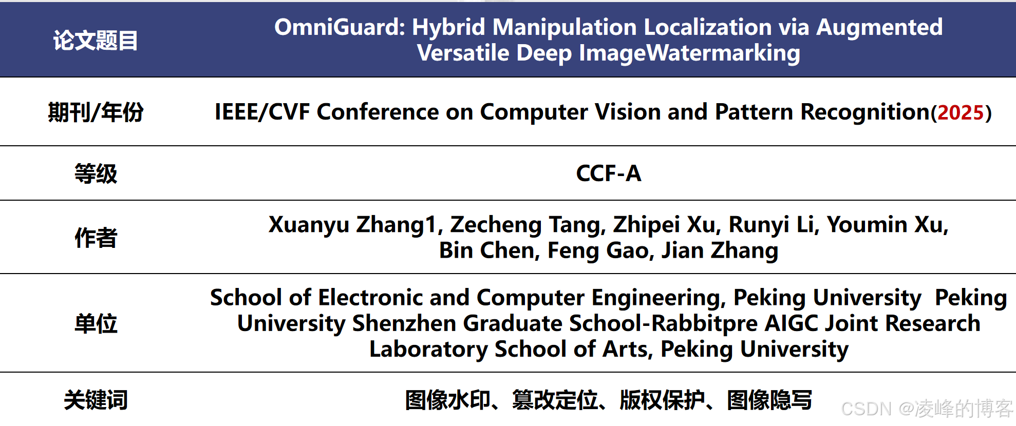 最近读到一个非常有意思的工作——OmniGuard。它提出了一种融合“主动水印”和“被动篡改检测”的混合取证框架,在面对各种AIGC编辑、压缩和噪声等复杂场景时,依然能精准地检测和定位图像篡改区域。这种方法给图像取证带来了一种全新的思路。