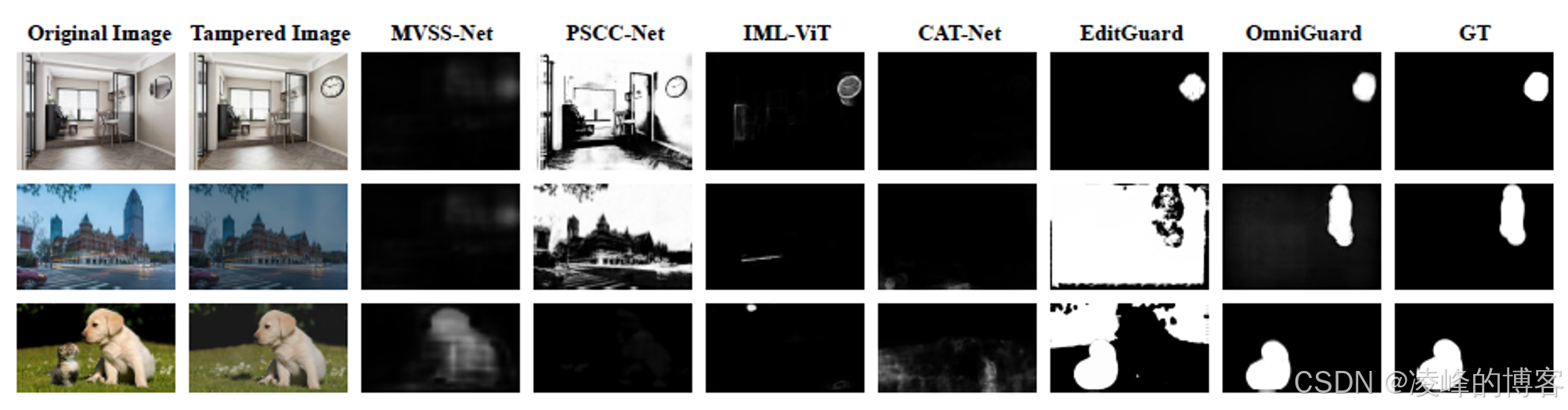 篡改定位精度:在干净条件下,F1分数 > 0.96;在退化场景(JPEG压缩、噪声干扰)下仍然保持高准确率,比 EditGuard 高出 20.7%。