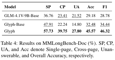 这个简单的辅助任务,极大地增强了模型对图像内文本细节的识别能力,更好地对齐了它的视觉和文本表征,让最终的Glyph模型既能看懂,也能读准。