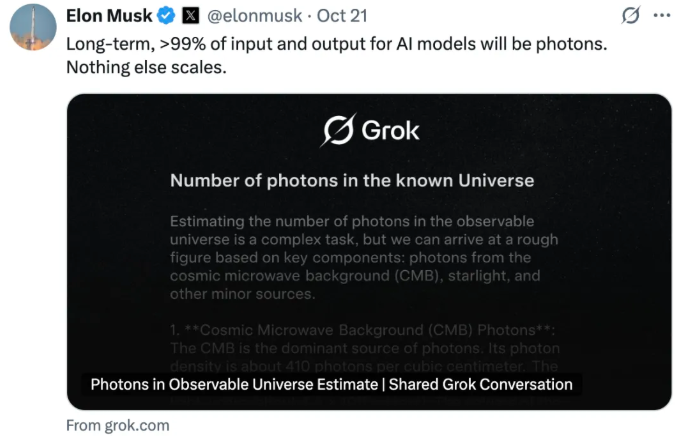 DeepSeek-OCR刚发布,马斯克说:从长远来看,人工智能模型的输入和输出中 99% 以上都将是光子。直到不能缩放。