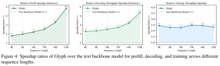 这种全方位的效率提升,让Glyph在处理海量长文本的实际应用场景中,具备了无可比拟的优势。